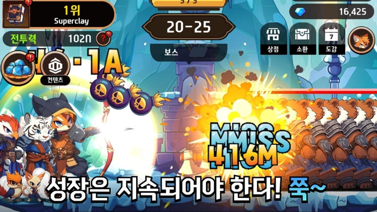 중간중간 모아서 한 번에 크게 도약 가능한 폭풍 성장 포인트도 공략해보세요!